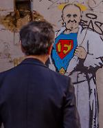 murale sui Navigli del rapper Salmo in abiti papali, TVBOY