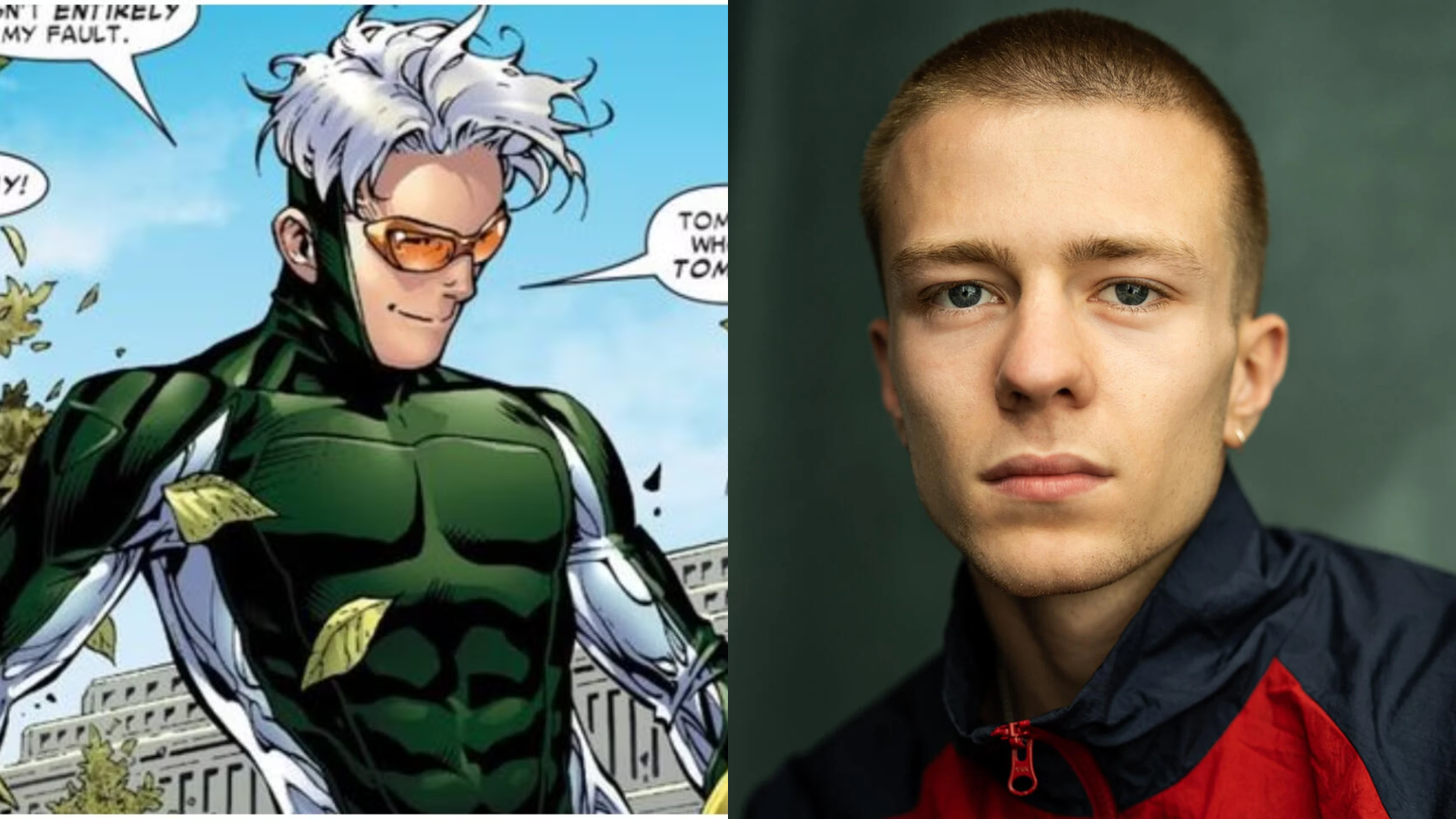 A sinistra, Speed nei fumetti; a destra, Ruaridh Mollica, potenziale interprete dell'Avenger