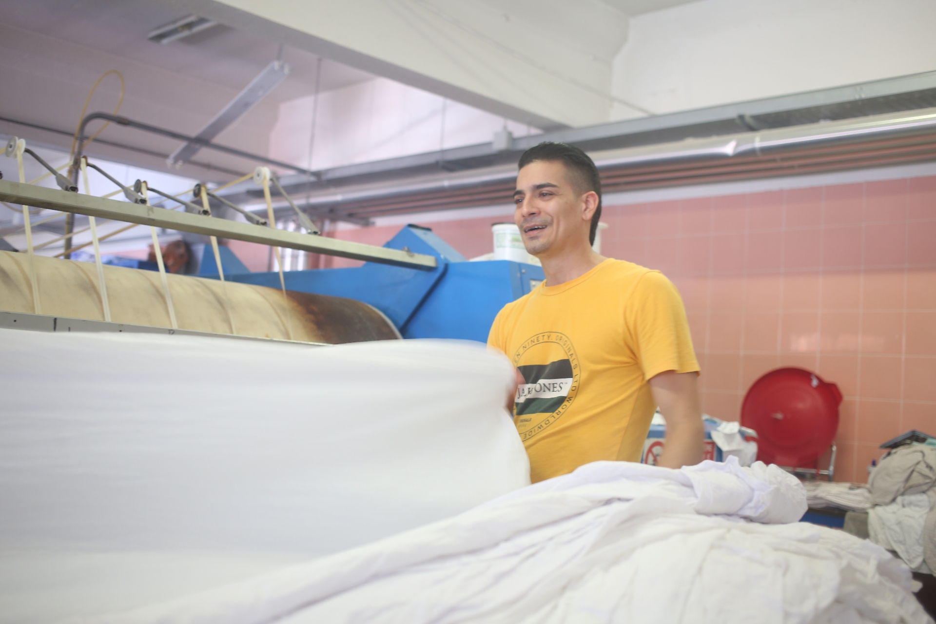 «Uscirò tra poco e spero che potrò continuare a lavorare con loro: così che questo percorso iniziato qui abbia un filo continuo...» afferma David mentre piega un lenzuolo.