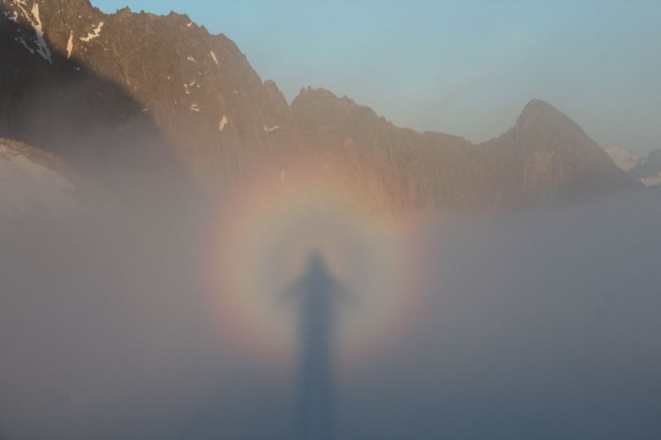 Si tratta di un fenomeno ottico che si verifica quando l'ombra di un osservatore o di un oggetto viene proiettata su una nube o nebbia sottostante, creando un'immagine ingrandita e circondata da un alone colorato (gloria) a causa della diffrazione della luce. Il nome deriva dal monte Brocken, in Germania, dove il fenomeno è stato spesso osservato.