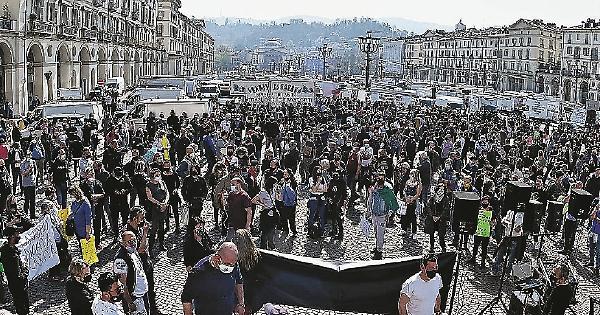 Ieri mattina piazza Vittorio si è trasformata in un grande parcheggio di van. «Abbiamo i furgoni carichi di vestiti primaverili che dovremo svendere il prossimo anno e i ristori latitano» sottolinea Benito Cellamaro, ambulante di piazza Foroni, mentre mostra gli abiti appesi all’attaccapanni. Per tante famiglie il mercato rappresenta l’unica fonte di reddito. «È il mio unico guadagno, ora per comprare il cibo ai miei tre figli non riesco più a pagare le tasse. Se non riaprono al più presto rischiamo di morire di fame» spiega Laura Vuolo, ambulante di prodotti per la casa arrivata da Piossasco per unirsi alla protesta. «In famiglia siamo in cinque e lavoro solo io, non si può più andare avanti così» segue a ruota Mohammed Musaked giunto in piazza da Pinerolo. «Per il governo siamo sempre invisibili» aggiungono Marco Giordano e la moglie Yunexy Gonzalez insieme alla loro figlia di 8 anni a casa da scuola. La manifestazione pacifica, con tanto di palco, cartelli, cappi e bare simboliche, è stata interrotta a un certo punto da una rapida incursione di un piccolo gruppo di “No mask” che ha generato attimi di panico tra la folla. Prima dell’intervento delle forze dell’ordine.