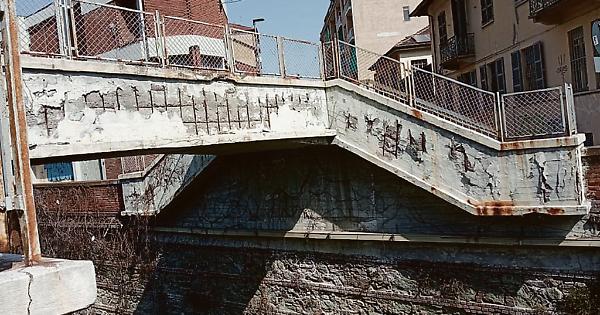 Ferri in bella vista, calcinacci che cadono sui gradini, spaccature nel marmo grandi abbastanza da farci passare un dito. Non è l’effetto di un terremoto, bensì una mancanza di manutenzione quella che ha ridotto in condizioni di deterioramento e abbandono la passerella pedonale che taglia in due via Giaveno, all’altezza di via Saint Bon. Il ponticello, utilizzato ogni giorno dai residenti e la domenica per andare a messa, non è certo in buone condizioni. Bastano due-tre foto scattate da vicino per dare l’idea del problema.