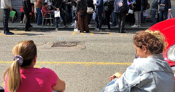 «Io ho già il biglietto per Zanzibar e sono qui dalle 5 - si sfoga Laura davanti al commissariato San Donato, in via Pinelli - Colpa del sistema online, è una burla: non si riesce a prenotare. Quindi non mi resta che fare questa cosa da terzo mondo. Un signore era qui da mezzanotte perché era la quarta volta che provava a passare. Ha distribuito i post-it con i numeri a chi arrivava dopo: quando è entrato gli abbiamo fatto l’applauso».