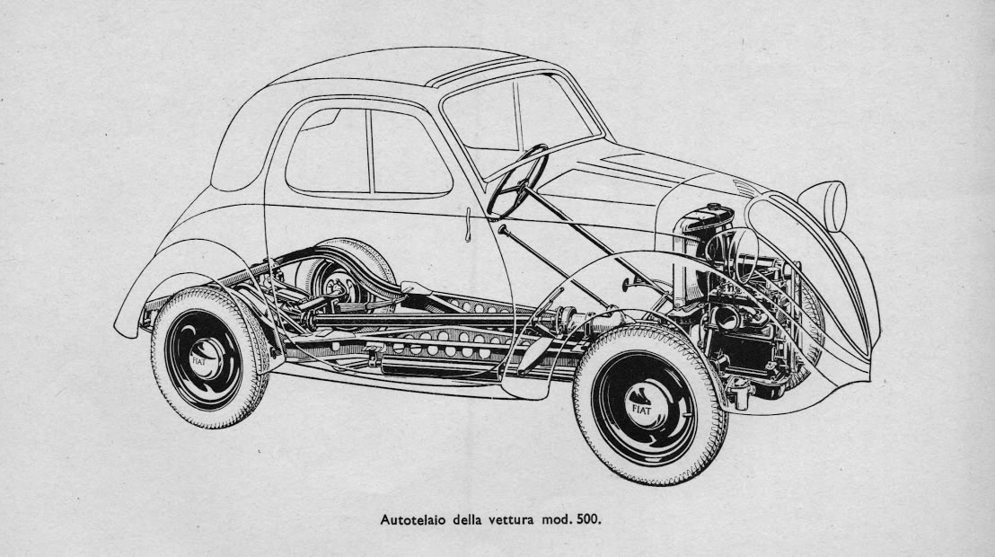 Il padrone era infatti piuttosto teso, perché l’incarico di progettare la piccola automobile che motorizzasse il Paese, con costo non superiore alle 5mila lire, veniva da Benito Mussolini in persona. E poiché, anche se sosteneva che per avere una camicia nera bastasse tingerne una bianca «ché tanto prima o poi passa», il senatore non era tipo da mettersi contro il regime, soprattutto per le sue mire espansionistiche e le varie forniture... All’ufficio tecnico Fiat, però, non buttarono via il progetto di quella vetturetta con motore bicilindrico da 500 centimetri cubici e si affidarono a Dante Giacosa.