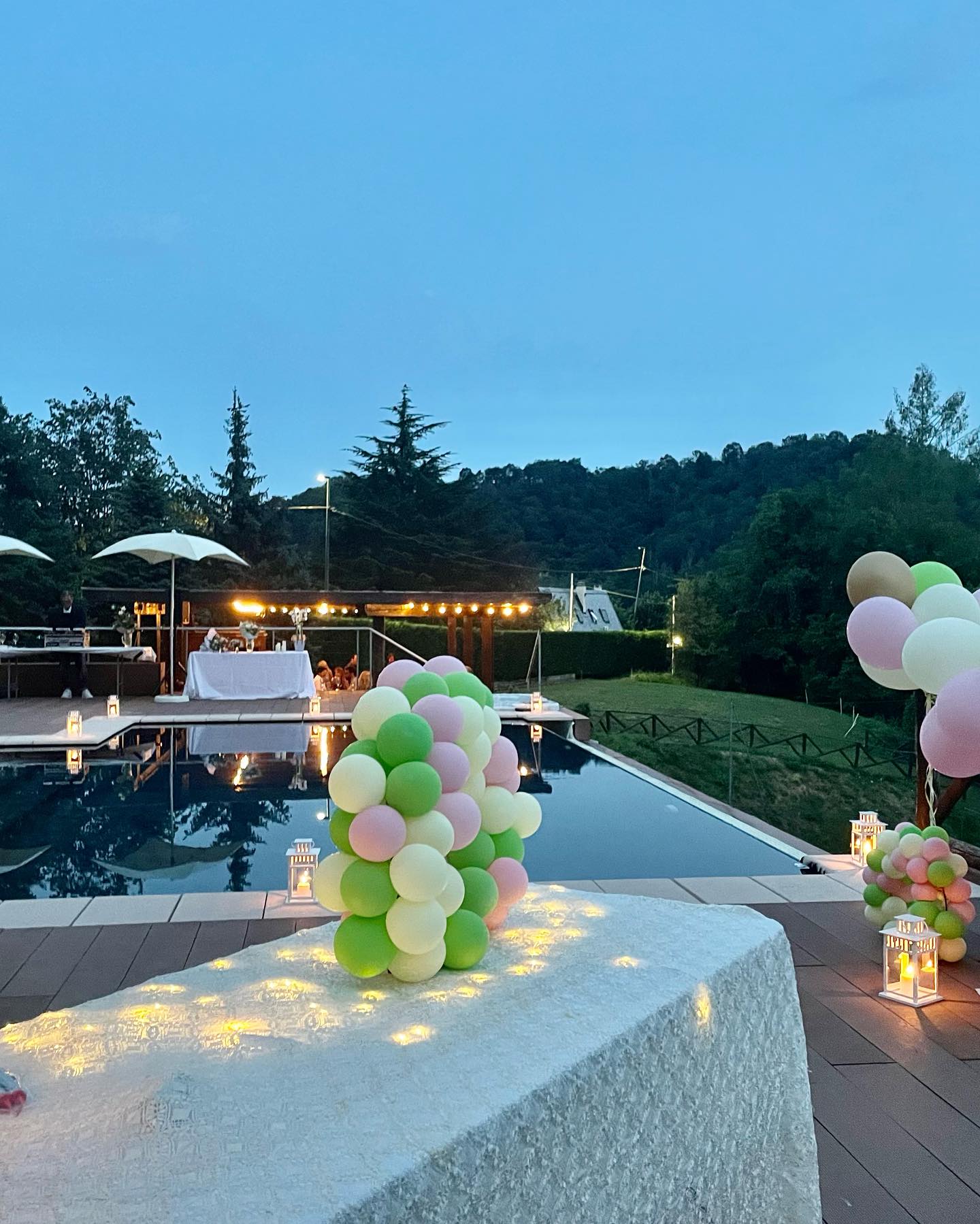 Anche lui si intrattiene con gli altri ospiti a bordo piscina durante l’aperitivo preparato da Bananna Kitchen, il ristorante chierese di Anna Fantini da cui escono meravigliosi stuzzichini sempre più presenti sulle tavole della Torino che conta, a partire da quella di Cristina Chiabotto, che ha scelto Bananna per la festa del primo compleanno della figlia Sofia.