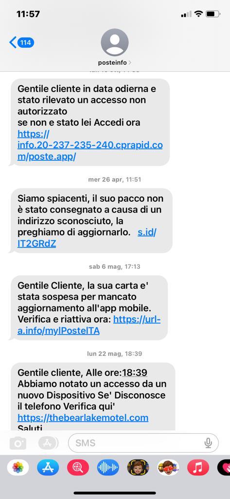 Esempi di "smishing", le truffe via messaggio sul cellulare