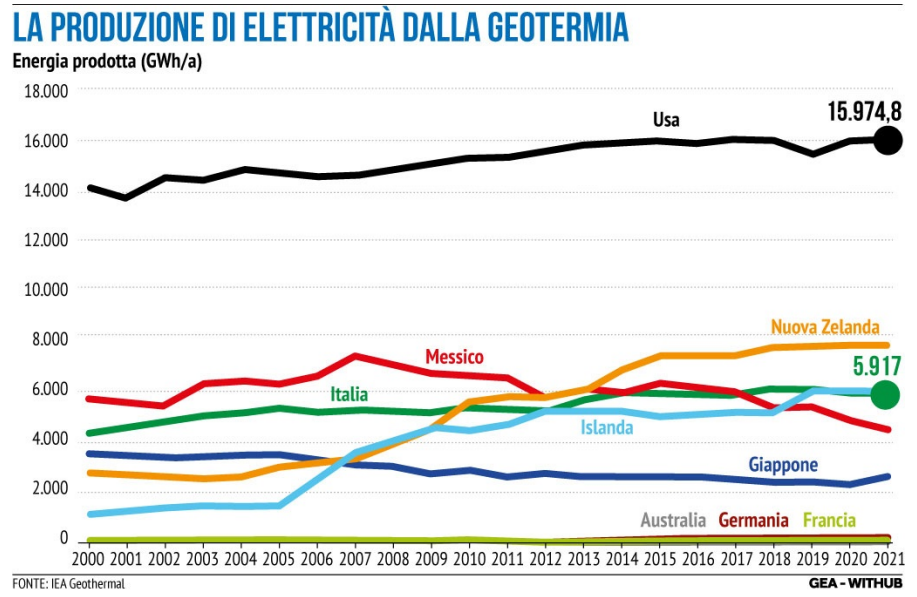 Il problema è stato affrontato nel recente convegno a Torino "Geotermia: dal calore del sottosuolo arriva la nuova rivoluzione verde", nell'ambito della Planet Week. "La geotermia a fianco dell'idroelettrico bianco, del fotovoltaico, dell'eolico e io dico anche del nuovo nucleare è il futuro per la decarbonizzazione" ha spiegato il ministro dell'Ambiente e della Sicurezza energetica Gilberto Pichetto Fratin a margine del convegno. Al momento la geotermia in Italia "è in grado di produrre sei terawattora all'anno, che possiamo dire, rappresenta il 2% di quello che è il complessivo di energia che utilizziamo - ha spiegato il ministro. "La nuova geotermia va molto in profondità e non consuma acqua. Questo è il dato. Quindi - ha aggiunto - le nuove tecnologie permettono davvero di fare della geotermia una delle fonti di produzione energetica rilevante. Quindi confidiamo naturalmente molto sulle nuove tecnologie".