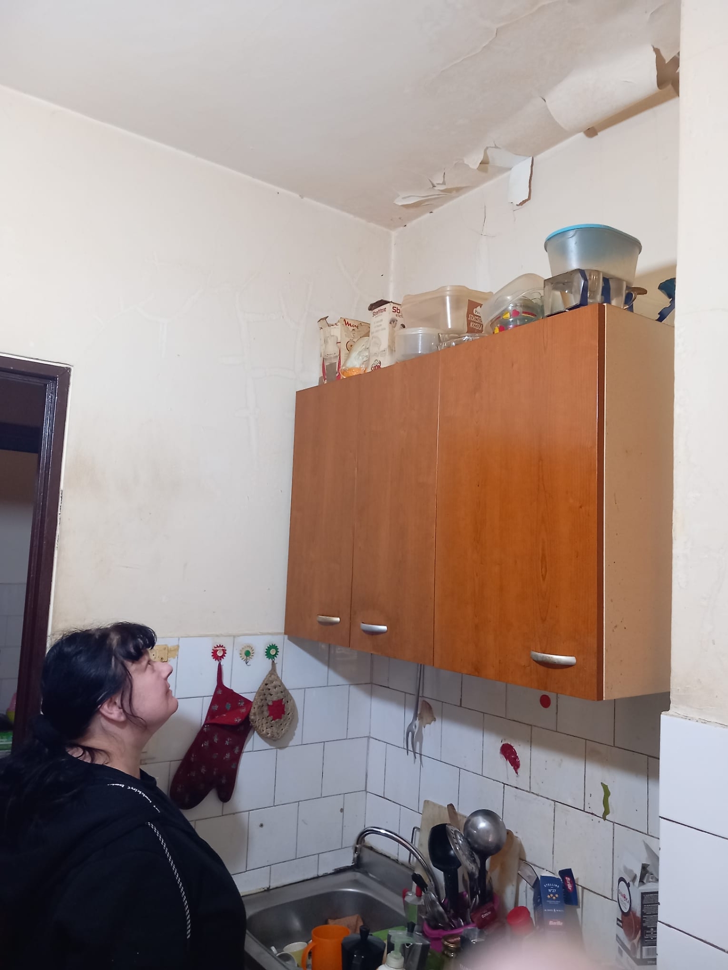 «Lo scorso gennaio è esploso un tubo dell’acqua al piano superiore, e con il passare delle settimane i muri sono diventati gialli, si sono formate chiazze nere sul soffitto e sono spuntati i primi cattivi odori, che per me rappresentano un problema grave». Manuela è invalida all’80% e convive con un serio problema respiratorio, che spesso le causa tosse, respiro affannoso e attacchi d’asma, anche della durata di diverse ore.