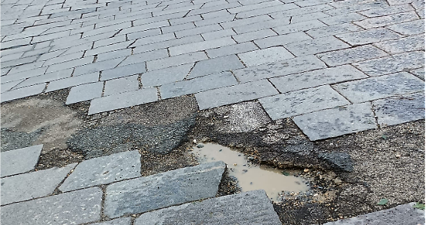 Marciapiedi e strade a pezzi, attraversamenti killer. Senza dimenticare le famigerate buche. Succede in centro, dove residenti e turisti incespicano sullo storico pavé ormai diventato un colabrodo.