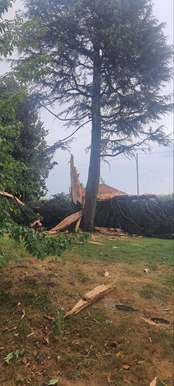 L'albero distrutto da un fulmine a Nole (foto Andrea Vuolo - Meteo in Piemonte)