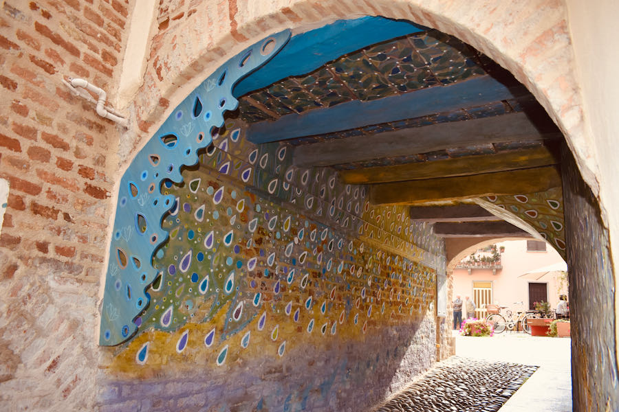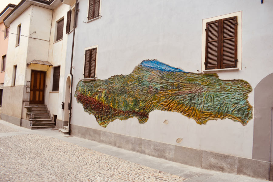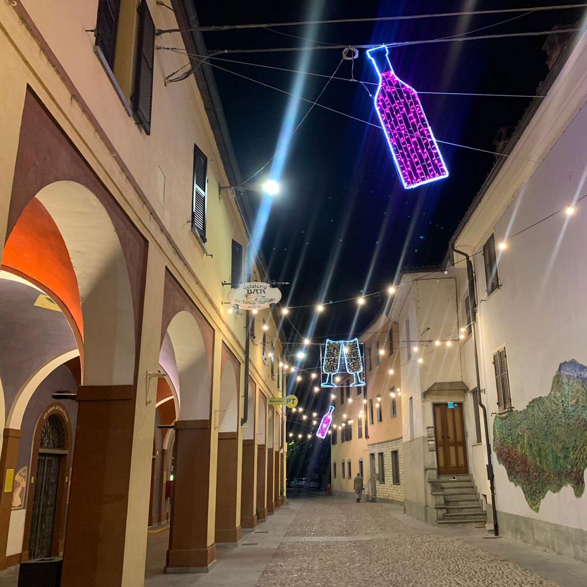 Salendo al borgo vecchio, tra gli edifici ottocenteschi, e godendo del panorama affacciati sulle colline sottostanti da piazza Giovannone, si prende via Ener Bettica dove ci sono i portici del colore del vino e delle stagioni. Mentre, sospese, ci sono installazioni che rimandano sempre al vino, così come i totem di Ugo Nespolo o i murales come quello di Beppe Gallo o le opere di Vincenzo Piccatto, autore per esempio del Portico di Tristano e Isotta.
