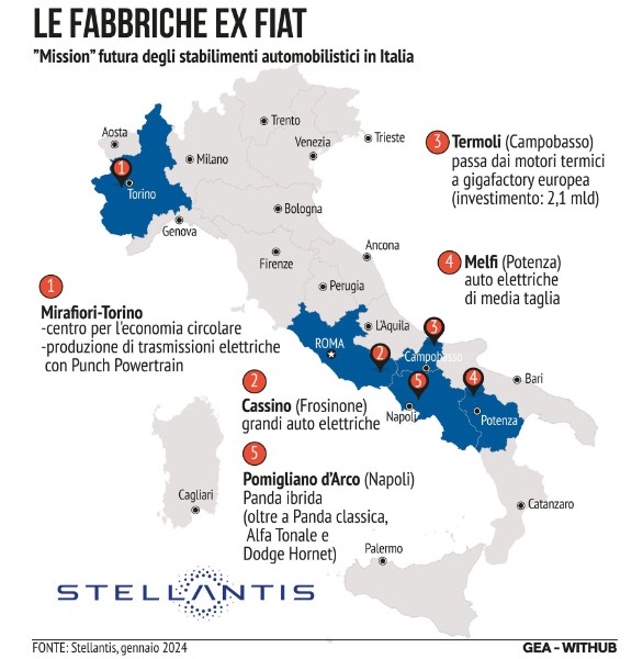 A cominciare dalla situazione degli stabilimenti italiani, dove spicca la realtà di Mirafiori. Che ieri mattina ha avuto la nuova mazzata: si prolunga lo stop produttivo alle Carrozzerie. Il Gruppo ha dato la comunicazione alle organizzazioni sindacali. Il motivo? «Persiste la mancanza di ordini legata all’andamento del mercato elettrico in Europa che è profondamente in difficoltà».