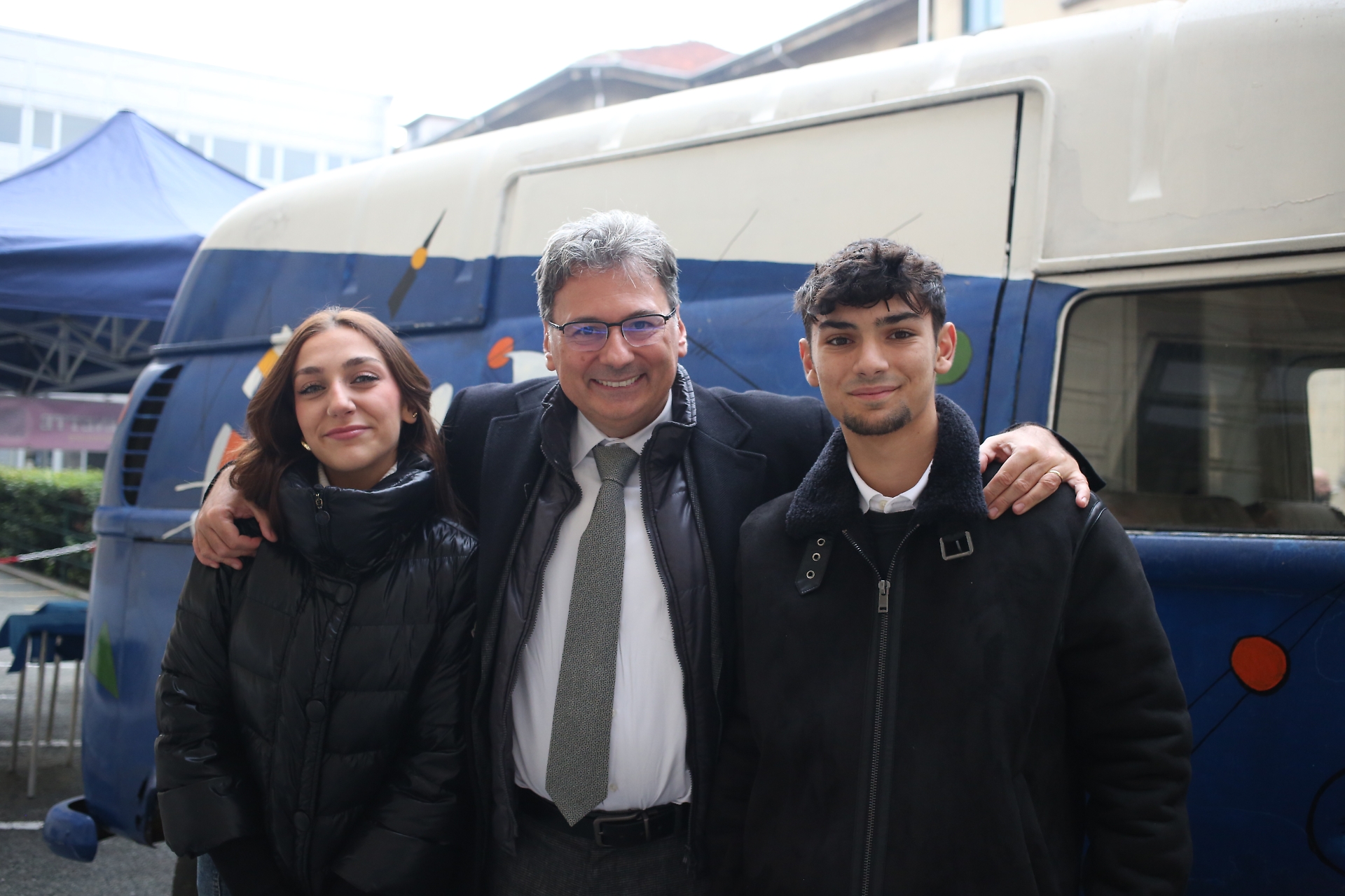 Alla conferenza stampa erano presenti anche il preside del Maria Mazzarello, Filippo Buzzio, e i due rappresentanti d'istituto Andrea Vergata e Marta Marletta: «Abbiamo dipinto il pulmino durante la cogestione: abbiamo scoperto dopo la sua destinazione, e ne siamo felicissimi».