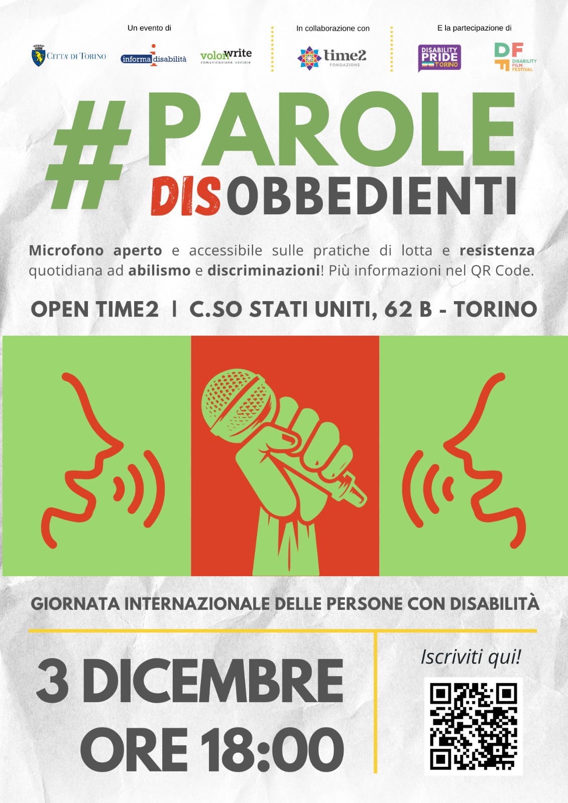 In occasione della Giornata Internazionale delle Persone con Disabilità, il 3 dicembre prossimo, Torino ospiterà un evento speciale dal titolo #ParoleDisobbedienti. Organizzato dallo sportello Informadisabilità del Comune di Torino in collaborazione con Associazione Volonwrite, Disability Pride Torino e il Disability Film Festival, l’incontro sarà un’occasione unica di condivisione e confronto.