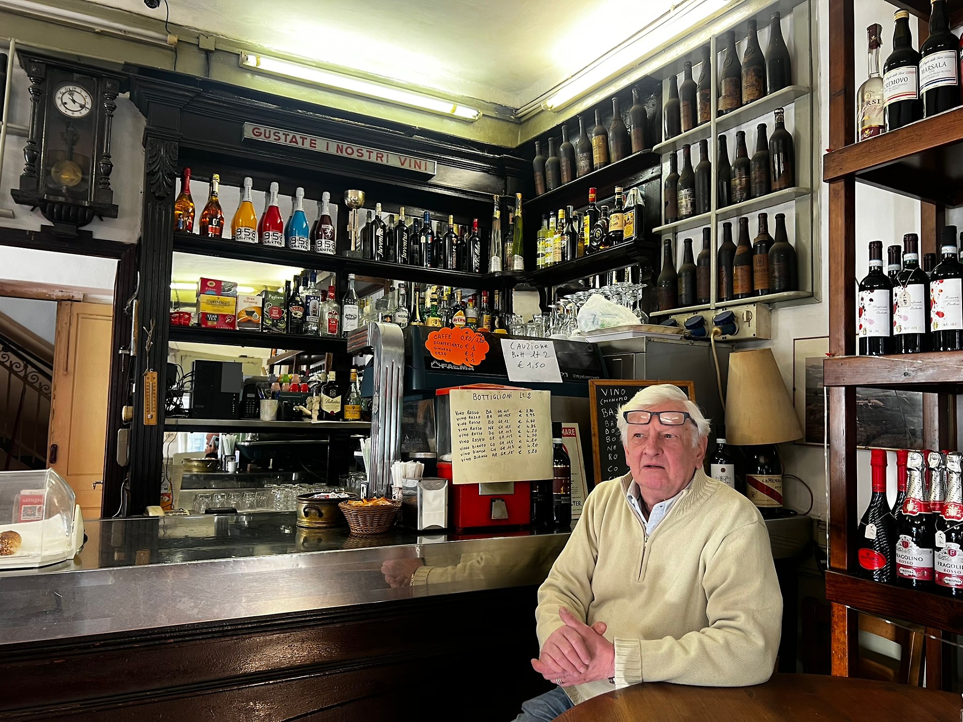 Siamo fronte mercato rionale: quando veniamo a trovarlo, dentro troviamo famiglie, uomini italiani e stranieri che condividono lo stesso tavolo. C'è chi passa a comprare il vino, in tanti: «Qui abbiamo una vera cantina: il vino e il caffè si trovano da noi. Nessuno mi chieda la cioccolata calda, perché se non c'è mia moglie io non so come farla», scherza Valter. Un uomo nato ad Asti che qui ha conosciuto sua moglie, e quando il suocero è andato in pensione ha lasciato a lui l'attività: si sono innamorati proprio tra le mura del bar.