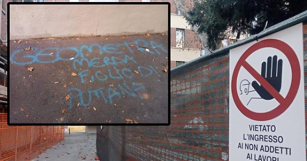 Tutto materiale che fa gola a chi se lo va a rivendere. E infatti, spesso gli operai che lavorano nel cortile subiscono vessazioni. Quando smontano, poi, avvengono i furti, tant’è che diversi oggetti sono già spariti. Ma qualcosa è cambiato: i responsabili della ditta in cantiere, recentemente, si sarebbero ribellati alle continue richieste. Come compenso, hanno ricevuto delle scritte shock con insulti vergognosi. Una delle frasi incriminate era su un muro ed è stata cancellata, ma sull’asfalto ce ne sono ancora un paio, gigantesche, fatte con lo spray che nello specifico prendono di mira il geometra che lavora al cantiere.