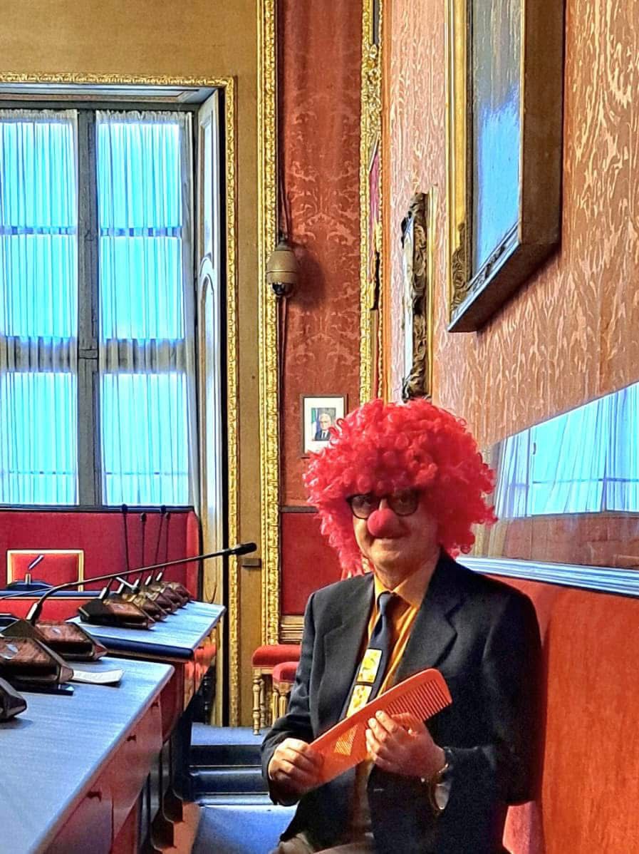 Il consigliere comunale dei Radicali Silvio Viale ha scelto una forma di protesta decisamente originale durante l'ultimo Consiglio Comunale, presentandosi in Sala Rossa con un naso e una parrucca rossa da pagliaccio. Un chiaro riferimento alla polemica di questi giorni a proposito del sopralluogo al centro sociale Askatasuna. Durante il sopralluogo, gli attivisti hanno voluto mettere alla prova i consiglieri comunali di centrodestra facendoli camminare su un tappeto di poster che ritraevano alcune figure politiche, tra cui il premier Giorgia Meloni, il ministro degli Esteri Antonio Tajani, il leader della Lega Matteo Salvini e Mussolini, tutti con il naso da clown. Un’azione simbolica per deridere i politici e rispondere alle loro posizioni politiche, che ha suscitato non poche polemiche. La protesta non si è fermata qui. Gli attivisti hanno tentato di fermare Viale all’ingresso del centro sociale, accusandolo di molestie, e hanno continuato la manifestazione con musica da circo e facce di cartone da pagliaccio, accostate alle immagini dei politici che non condividono la loro ideologia.