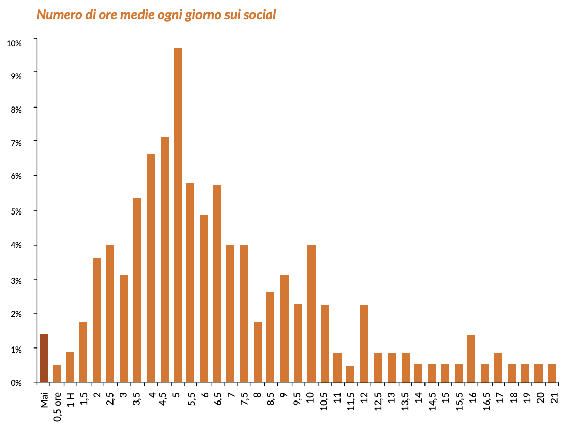 Si tratta di una generazione sicuramente iperconnessa. Secondo la ricerca il Web viene utilizzato soprattutto per ascoltare/scaricare musica, vedere film e serie tv, e per la messaggistica. Ma quanto tempo restano sul web e quali social usano maggiormente?