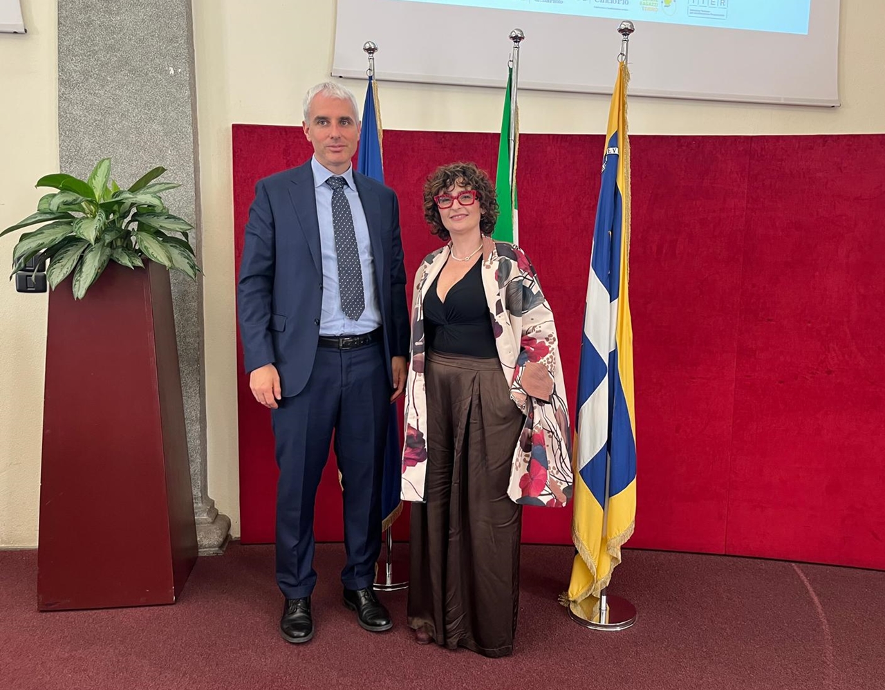 A destra, Alberto Anfossi, segretario generale Fondazione Compagnia San Paolo. A sinistra, Carlotta Salerno, assessora all'istruzione di Torino