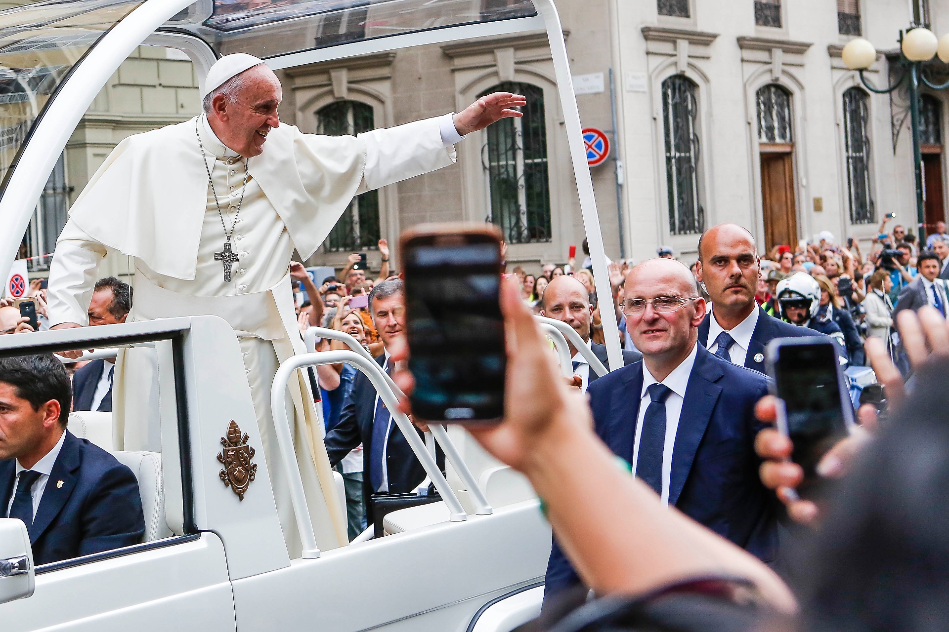 Francesco sulla Papamobile tra le vie di Torino, nel 2015