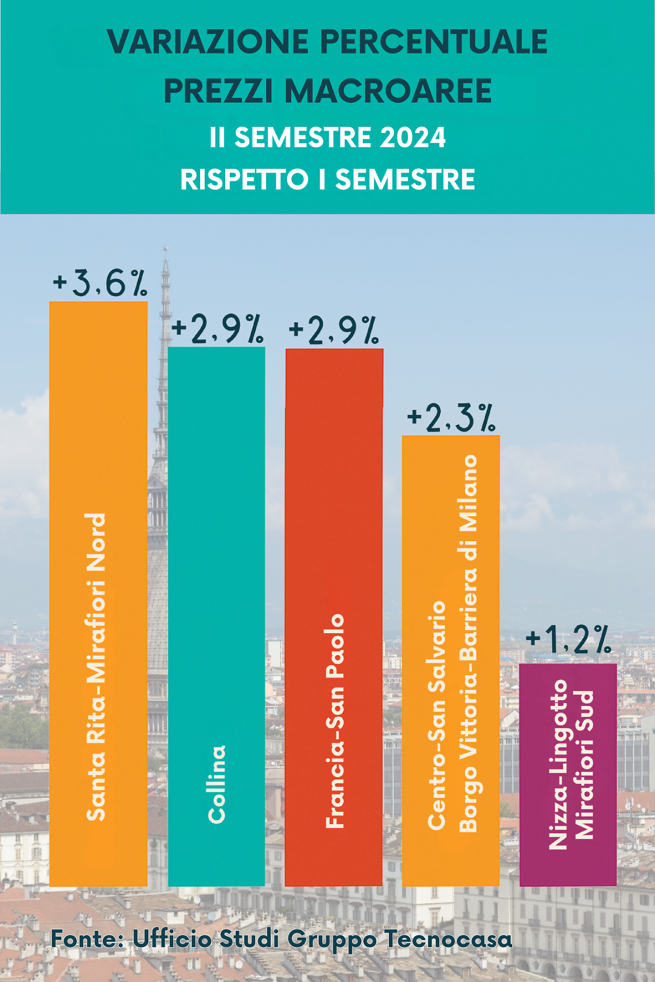 Secondo le ultime analisi dell’Ufficio Studi Gruppo Tecnocasa, a Torino nel secondo semestre del 2024 le quotazioni immobiliari sono mediamente aumentate del 2,5%. Ma, pur restando costante il segno "+", da quartiere a quartiere gli aumenti variano di parecchio.