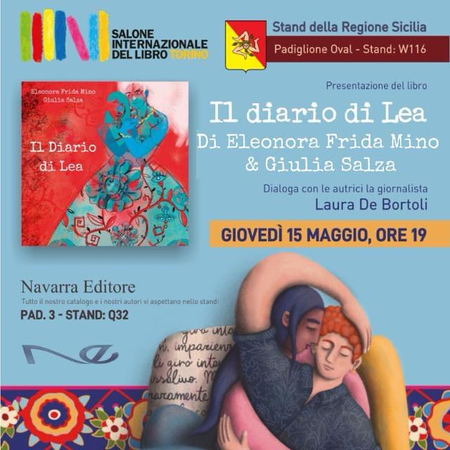 Giovedì 15 maggio, presso il Lingotto Pad. Oval Spazio Sicilia, si terrà un incontro speciale con Giulia Salza ed Eleonora Frida Mino, autrici de "Il diario di Lea" (Navarra Editore). L’evento, in programma dalle 19:00 alle 20:00, vedrà le scrittrici dialogare con la giornalista Laura De Bortoli, approfondendo il significato e la costruzione di questo album illustrato dedicato alla figura di Lea Garofalo, testimone di giustizia vittima della ‘ndrangheta.