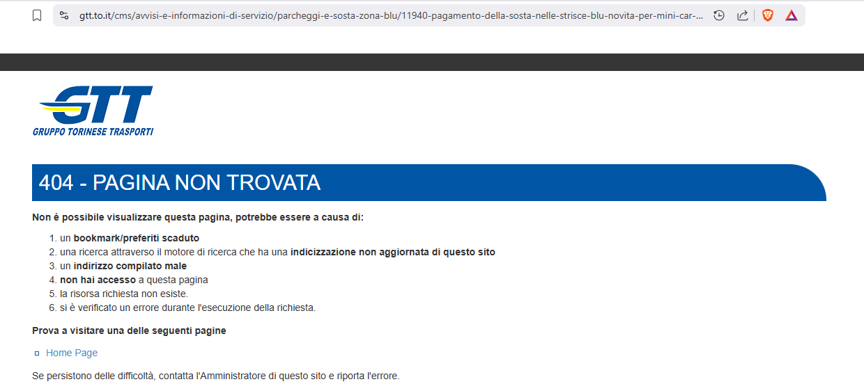 Tutto sparito. Ora se si prova a consultare la pagina del sito Gtt al posto dell'avviso si trova solo la scritta "Pagina non trovata".