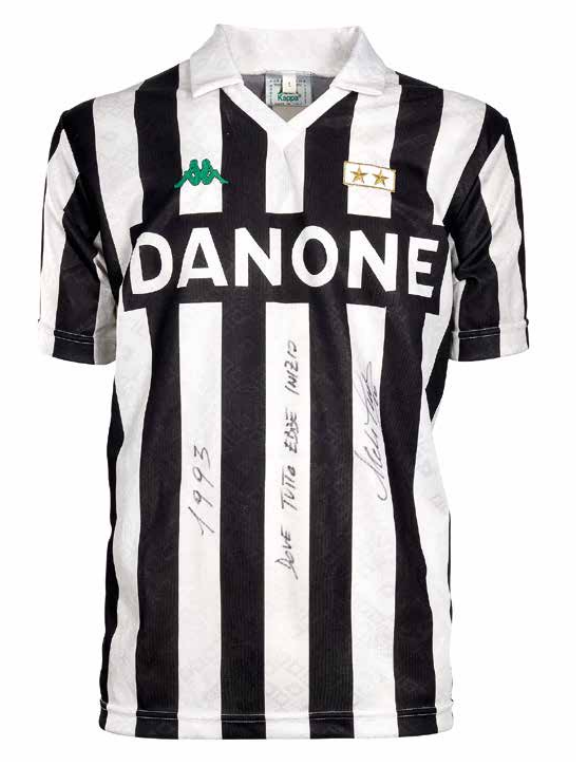 La maglia arriva proprio dalla collezione di Giglio. "Pescata" da un magazziniere per la foto, dopo lo scatto il giovane Del Piero se la sfilò e educatamente la ripiegò e la ripose su una sedia. Giglio, che di campioni se ne intendeva, probabilmente intuì qualcosa: la raccolse e se la portò a casa. Era il 1993 ed esattamente 30 anni dopo i due si rincontrarono in uno Juventus Club: Giglio sporse la maglia a Del Piero che l'autografò con la dedica "1993 dove tutto ebbe inizio".