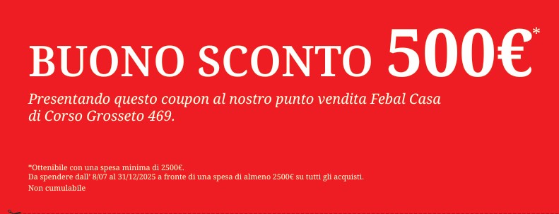 Inoltre, presentando un buono sconto del valore di 500 euro, disponibile sotto forma di coupon, i clienti potranno ottenere un ulteriore vantaggio sull’acquisto dei loro nuovi arredi.