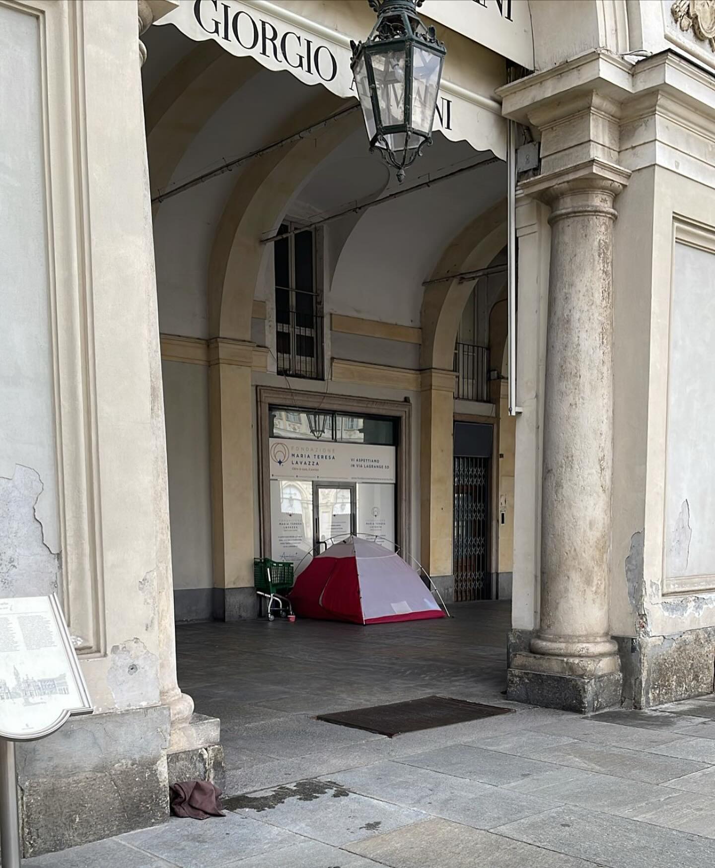 Il problema dei senzatetto nel centro di Torino sta diventando sempre più pressante. La foto, condivisa da Grazia Poggio Sartori, consigliere in Circoscrizione 1 in quota Fratelli d'Italia, è emblematica: sopra, le tende con le insegne del negozio di Giorgio Armani, una delle firme del lusso italiano. Sotto, il giaciglio di fortuna di un senzatetto, che per ripararsi ha montato addirittura una tenda, vicino alla quale c'è un carrello della spesa recuperato chissà dove. Il simbolo, da un lato, dell'esigenza di aiutare chi non ha una casa e, dall'altro, di restituire decoro alla piazza più amata dai torinesi e dai turisti in visita a Torino. "Altro che decoro urbano - lamenta infatti la stessa Poggio Sartori - Una città abbandonata al degrado, sotto gli occhi di tutti. E le istituzioni? In silenzio, immobili, non intervengono nemmeno per la rimozione".