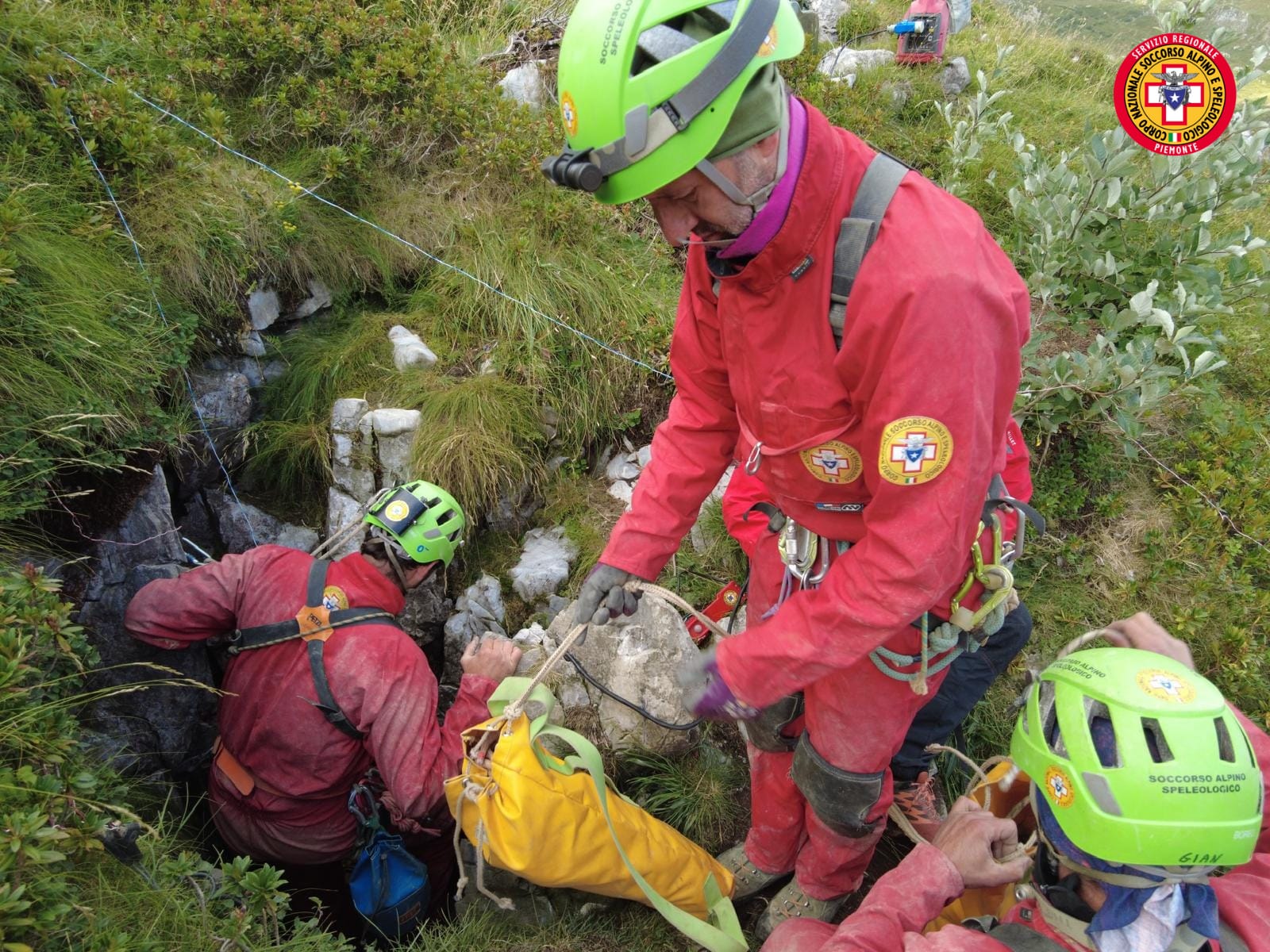Nel corso della notte si sono alternate complessivamente una cinquantina di tecnici del Corpo Nazionale Soccorso Alpino e Speleologico provenienti da Piemonte, Liguria, Lombardia, Veneto, Trentino, Alto Adige, Friuli e Umbria. Al momento è stato impossibile portare in salvo lo speleologo perché tra lui e la superficie ci sono tre strettoie, impossibili da superare con un paziente in barella. E quindi i tecnici del Soccorso alpino si stanno facendo largo con l'esplosivo: detonazioni controllate per allargare il passaggio e consentire il passaggio dell'infortunato.