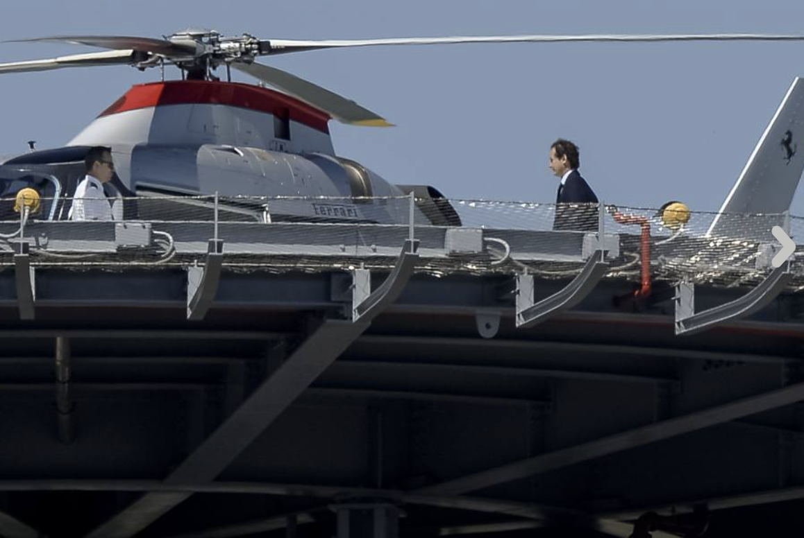 Abbiamo svelato l'uso dell'elicottero, in particolare di un Agusta Westland Aw139 (costo attorno ai 12 milioni di euro) intestato a Fca Security, già in uso all'Avvocato. Ma anni fa lo si è visto arrivare, in occasione di un cda di FCA, con un altro Agusta con i marchi Ferrari.