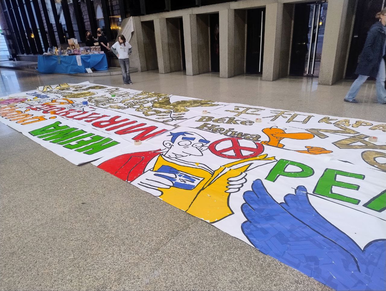 Due “liberi di essere impegnati”, come recita il titolo del dialogo tenuto da Bao publishing ieri pomeriggio nel gran Foyer del Teatro Regio di Torino, in piazza Castello. La stessa piazza che neanche 48 ore prima era stata protagonista di violenti scontri, strascico dei cortei pro Pal. E che, quindi, spinge alla doverosa domanda: «Siete liberi di essere impegnati anche per Gaza?». Una domanda probabilmente nella testa dei tanti che ascoltavano il dialogo, mentre giù, nell’atrio centrale del teatro, si componeva lentamente un gigantesco e colorato striscione sui simboli della pace. Una domanda proferita al termine dell’incontro da un giornalista in sala.