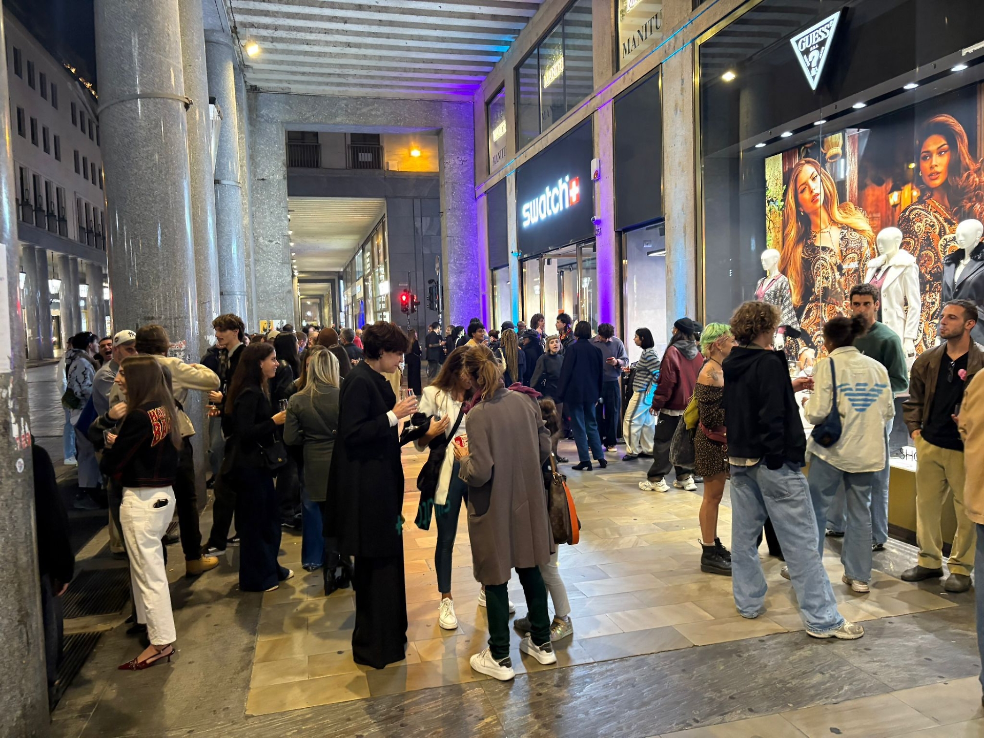 Questa sera, una lunga coda si è formata davanti al negozio Swatch in centro a Torino.