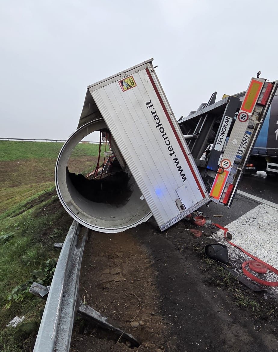 Incidente autonomo questa mattina all’interno della rampa di collegamento tra l’autostrada A4 e lo svincolo per Falchera e le tangenziali di Torino. Un autoarticolato si è ribaltato, facendo finire il semirimorchio e parte del carico di blocchi di cemento fuori dalla carreggiata.