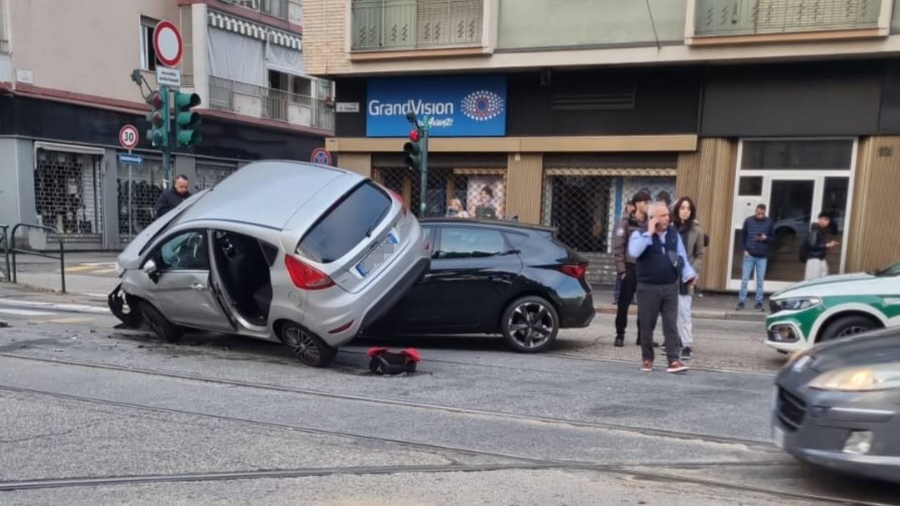 Incidente con traffico in tilt questa mattina, venerdì 31 ottobre, poco dopo l'alba a Barriera di Milano. In corso Giulio Cesare angolo via Elvo, alle 7.30 tre auto si sono scontrate e una vettura è finita sopra un'altra. Sul posto sono arrivati pompieri e polizia municipale, con la circolazione del tram 4 rimasta bloccata per parecchio tempo e diversi tram incolonnati in corso Giulio Cesare. A scontrarsi sono state tre vetture: una Cupra, una Ford Fiesta e un mezzo della Croce Rossa. Nella collisione, la Ford Fiesta è finita sopra la Cupra. Solo un danno al paraurti, invece, per il mezzo del 118.