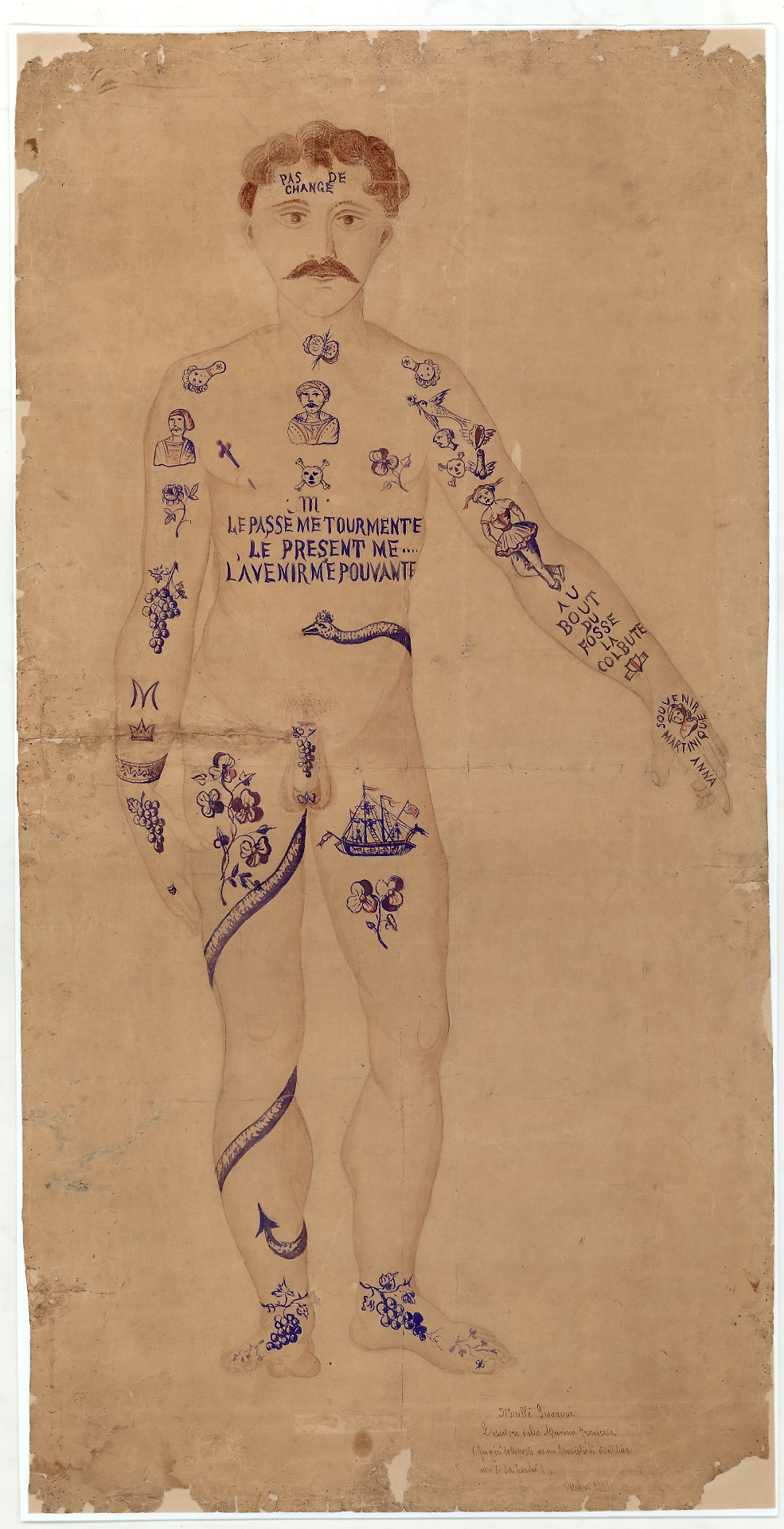 La collezione, composta da grandi riproduzioni di corpi tatuati di persone vissute tra la fine dell’Ottocento e i primi decenni del Novecento, costituisce una delle testimonianze più singolari dell’interesse scientifico di Cesare Lombroso (1835–1909) per il fenomeno del tatuaggio. Le incisioni e i disegni sulla pelle, osservati inizialmente da Lombroso negli anni Sessanta del XIX secolo durante il suo servizio come medico militare, divennero oggetto di uno studio pionieristico e, successivamente, di riflessioni nell’ambito dell’antropologia criminale.
