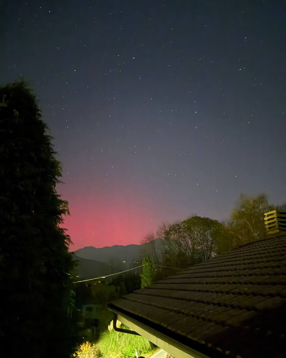 Nelle foto del Centro Meteo Piemonte, ecco l'aurora boreale di questa mattina a Lanzo Torinese e a Prascorsano: