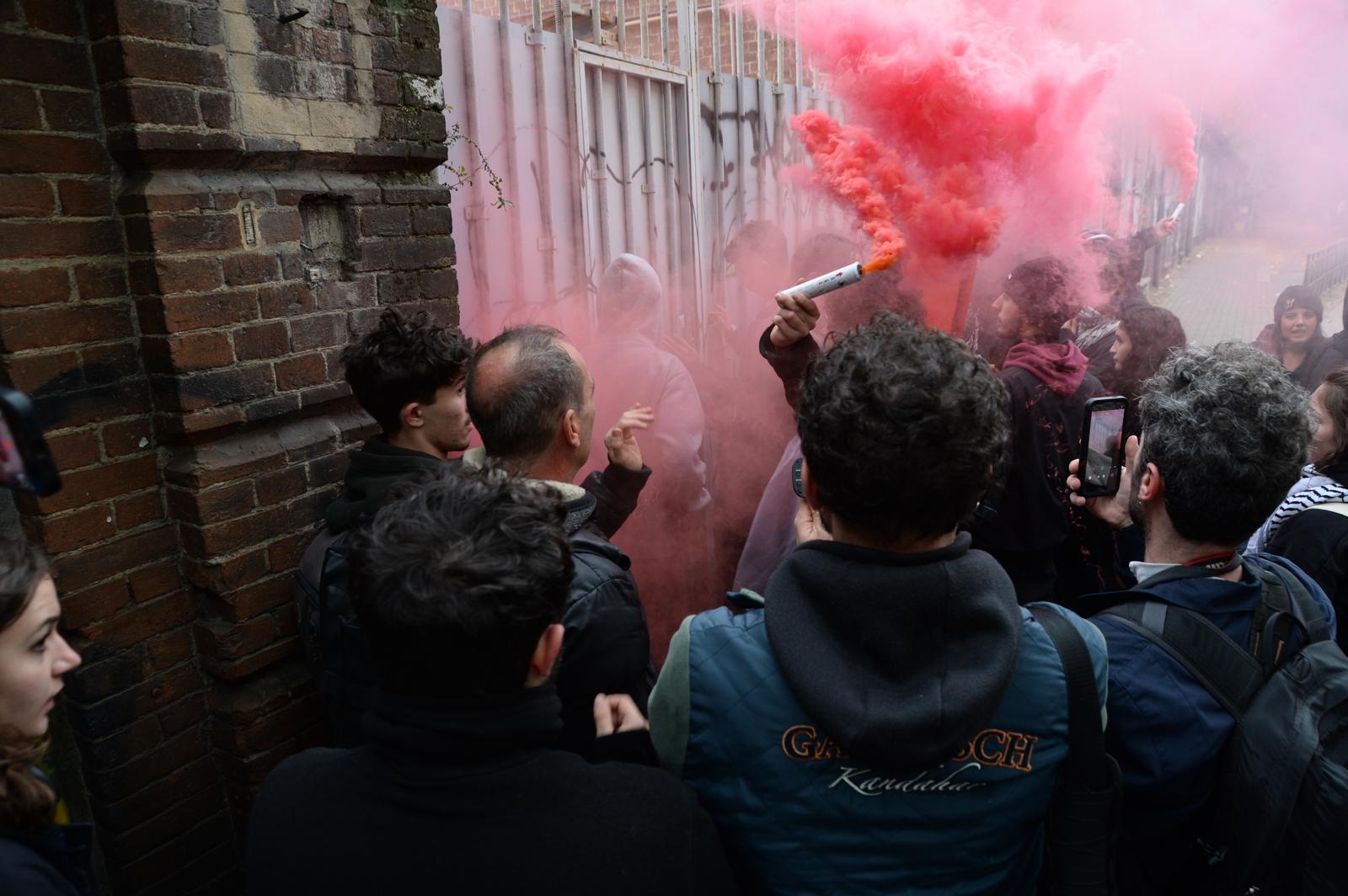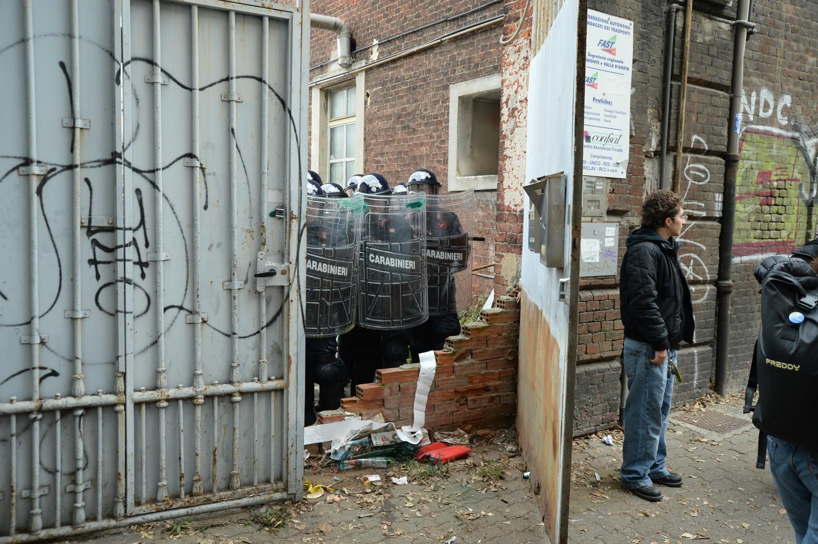 ORE 13.30: il momento della violenza a Città Metropolitana. Dopo un fitto lancio di uova e fumogeni contro la polizia che presidiava l'edificio dal lato di corso Inghilterra, i manifestanti hanno svoltato in via Cavalli. Approfittando di un varco lasciato aperto, i manifestanti sono entrati e hanno svuotato gli estintori contro la polizia. Dopo essere stati scaricati, gli estintori sono stati lanciati contro gli agenti. Due manifestanti sono stati fermati e trattenuti. Successivamente, sono stati rilasciati. Otto agenti del Reparto mobile della polizia sono rimasti feriti nei disordini.