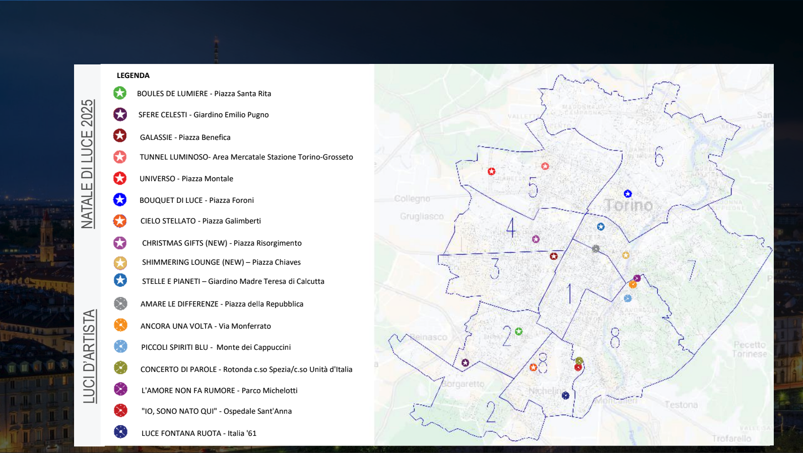 «La posizione delle luci è ben studiata - racconta Luca Rolandi, presidenti Circoscrizione 2 - E si diffonde nelle aree limitrofe alla zona centrale della città (circoscrizione 1) illuminato dalle Luci d’Artista. Completando e diffondendo così l’atmosfera magica a tutta Torino».