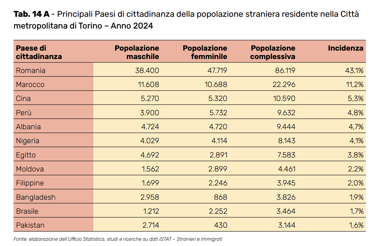 La mappa della città parla chiaro: la presenza straniera è più marcata nelle circoscrizioni 6, 3 e 5, ossia Barriera Milano, Borgo San Paolo e Pozzo Strada, Lucento e Parella, dove il mosaico sociale è ormai patrimonio quotidiano. La Romania resta la prima comunità, seguita da Marocco, Perù, Cina, Egitto, Nigeria, Albania, Iran, Filippine e Bangladesh. Si intravedono, al tempo stesso, primi segnali di ritorni verso i Paesi di origine, soprattutto nell’Est europeo.