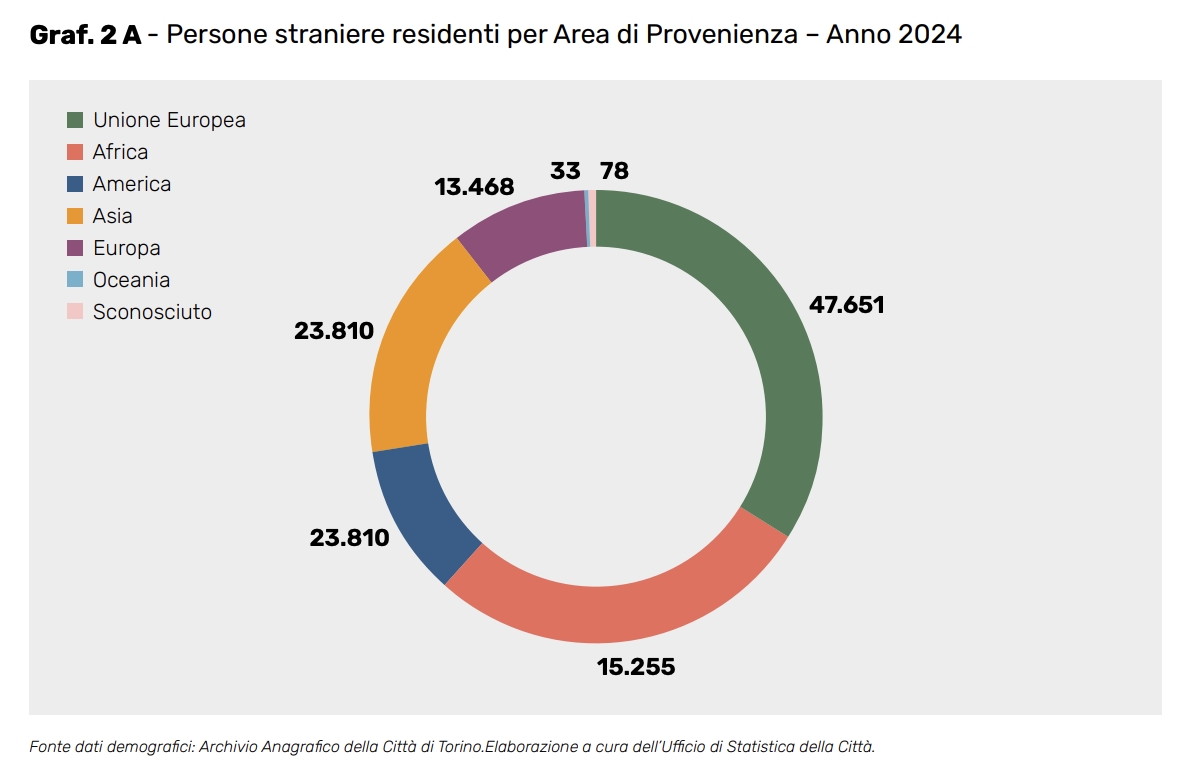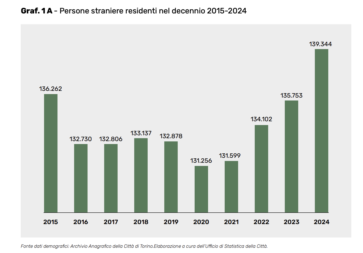Torino sempre più giovane e multietnica. È la fotografia di una città che cambia, sulla spinta dei flussi migratori, con la presenza degli stranieri che ha toccato il picco in un decennio. E se gli stranieri sono sempre più giovani, gli italiani invecchiano (e piano piano diminuiscono). È questa la situazione che emerge dall’ultimo rapporto dell’Osservatorio interistituzionale sulle persone straniere 2024.