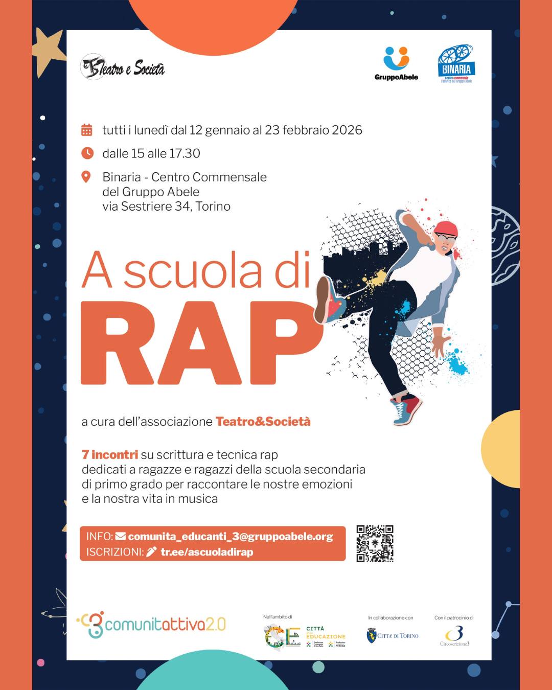 Scrittura, musica e racconto personale si incontrano tra i banchi di scuola. A Torino prende il via “A scuola di rap”, un percorso laboratoriale dedicato a ragazze e ragazzi della scuola secondaria di primo grado (11-14 anni), con iscrizioni già aperte. Sette appuntamenti per dare voce alle emozioni, sperimentare il linguaggio del rap e imparare a trasformare pensieri ed esperienze in rime e strofe capaci di farsi ascoltare, senza filtri e con autenticità.