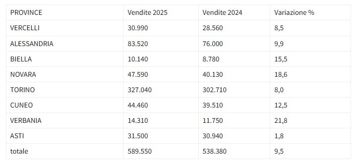 Secondo i dati ufficiali dell'Agenzia delle Dogane e dei Monopoli, per l’edizione 2025, il totale dei biglietti venduti in Piemonte è di 589.550, in aumento del 9,5% rispetto al 2024, quando sono stati staccati 538.380 tagliandi. Come riporta Agipronews, Torino si conferma in testa come provincia, con oltre la metà di biglietti venduti per tutta la regione (327.040, +8%), al secondo posto Alessandria a 83.520 (+9,9%), mentre al terzo Novara con 47.590 (+18,6). A seguire Cuneo a quota 44.460 (+12,5%), Asti a 31.500 (+1,8%) e Vercelli con 30.990 (+8,5%). Chiudono la provincia del Verbano-Cusio-Ossola, dove si è registrato il maggior incremento regionale con 14.310 equivalente al +21,8%, e Biella con 10.140 (+15,5%).