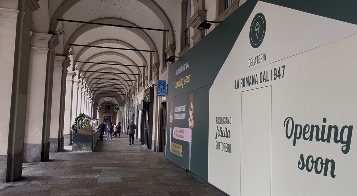 Con la comparsa del gigantesco cartellone è ormai ufficiale: al posto del bar Alice aprirà presto una nuova sede della storica catena di gelaterie La Romana.