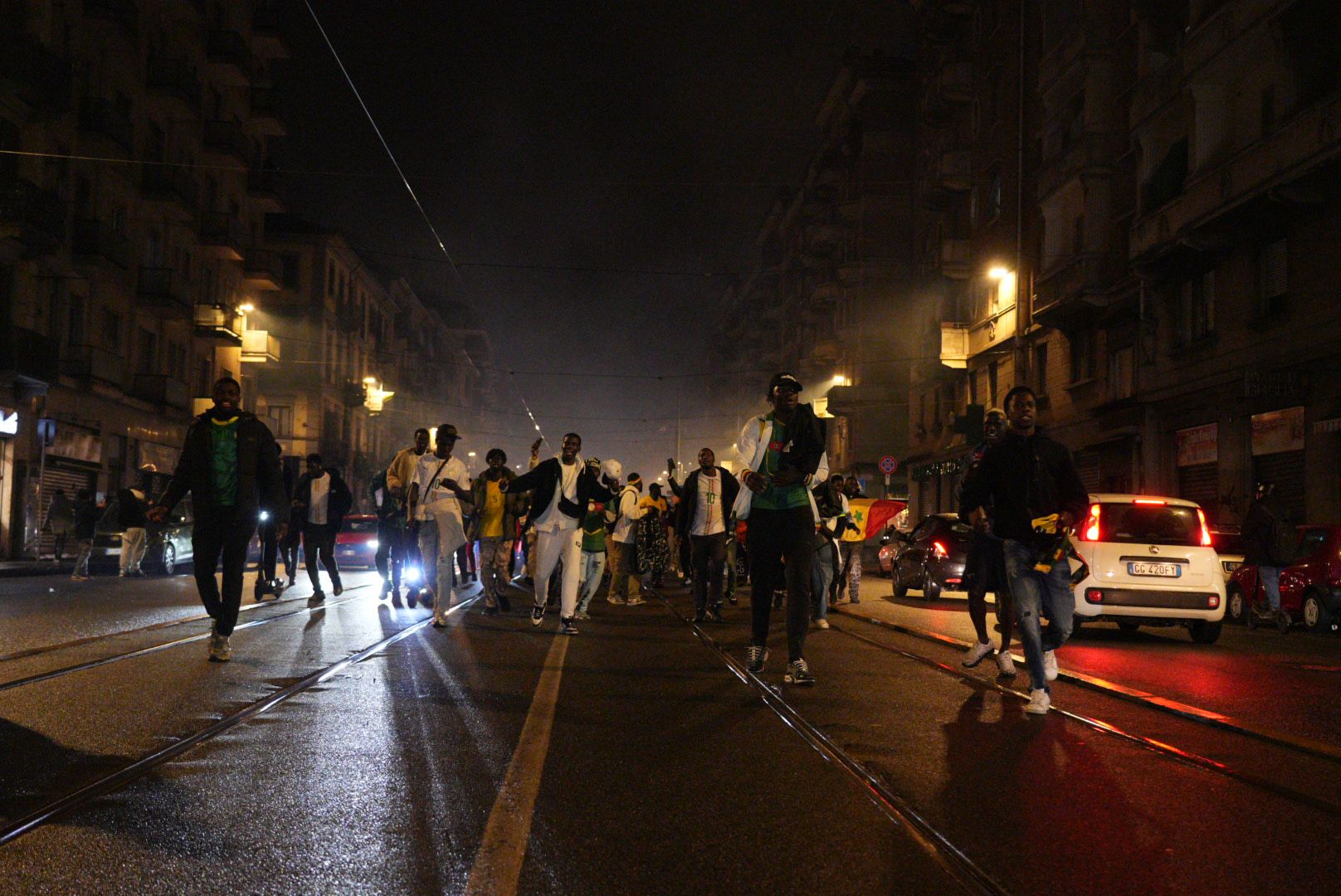 Al triplice fischio della drammatica (sportivamente parlando) finale contro il Marocco, vinta ai supplementari con un gol di Pape Gueye e dopo essersi ritirati dal campo, essere rientrati e aver vanificato un rigore calciato dal Marocco al 20’ minuto di recupero, i tifosi senegalesi hanno potuto fare esplodere la propria gioia, sfilando lungo corso Vercelli e corso Giulio Cesare. Scene simili a quelle viste nel 2022, durante gli ultimi mondiali, quando furono proprio i tifosi marocchini a scendere in strada a Torino per festeggiare le vittorie della propria nazionale. Gli stessi che questa sera, molto sportivamente, sono scesi in strada con i senegalesi per festeggiare con loro.