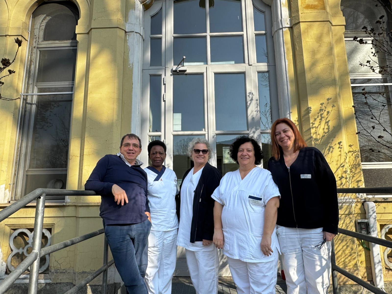 Il dott. Giancarlo Orofino e le infermiere che gestiscono il Padiglione B dell'Ospedale Amedeo di Savoia