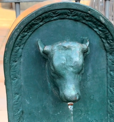 Questo turet è unico in città. A differenza dei tradizionali tori, fieri e cornuti, le sue corna sono state deliberate mozzate per ragioni simboliche. Nella tradizione iconografica, le corna sono spesso associate al diavolo, e la decisione di rimuoverle nasce proprio dalla vicinanza della fontanella alla chiesa di Santa Giulia: il toro si trasforma così in una figura più pacata, quasi simile a una mucca, evitando riferimenti satanici vicino a un luogo sacro.