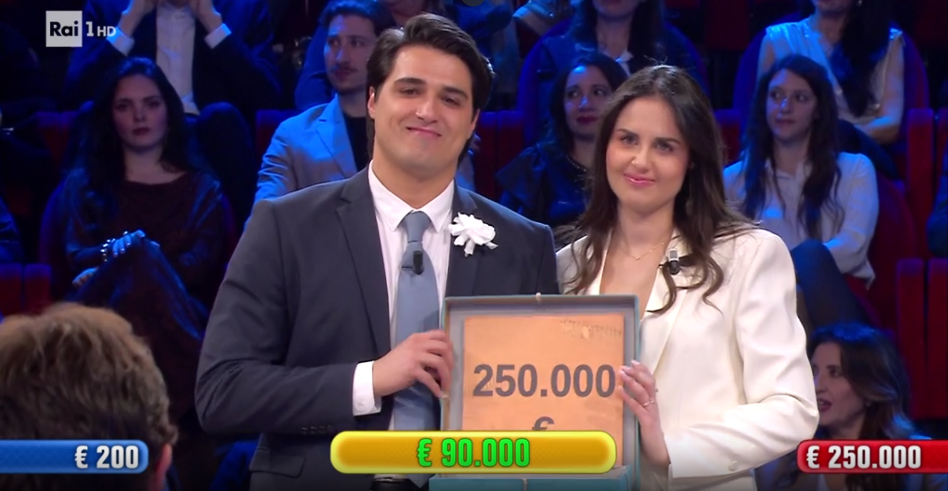 Chiamano proprio quel pacco e l’onda si ritira: offerta giù a 50mila. Si va oltre. Esce Gennarino, il Dottore rilancia a 69mila, altro no. Ma un 75mila se ne va. Finale a tre: 200 euro, 150 mila o 250 mila. Arriva la proposta da 90mila euro. Stavolta sì. Nel loro pacco 7, si scopre, c’erano 250 mila euro.