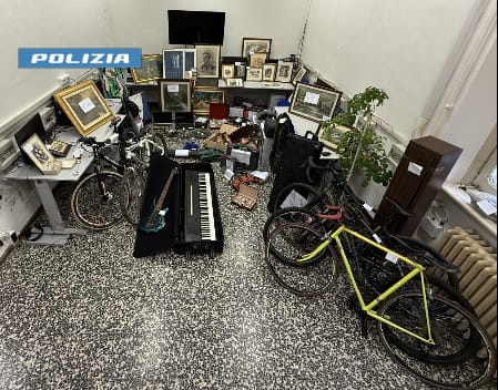Le indagini si sono poi estese alla casa dell’uomo e al bar che gestisce. Qui la polizia ha sequestrato numerosi oggetti rubati, tra cui quadri, biciclette di valore e gioielli. Tutti i beni recuperati sono stati catalogati, e i legittimi proprietari possono richiederne la restituzione.